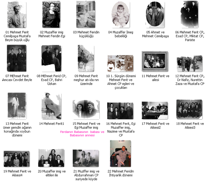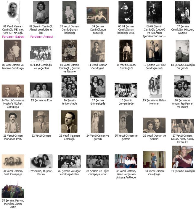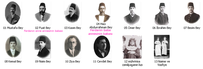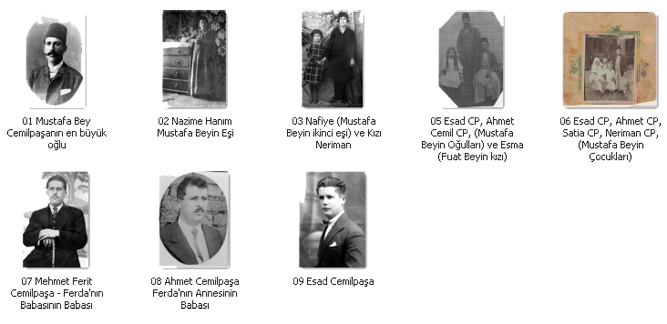 Daha onceki donemlerde fotograf olmadigi icin Yagli tablolarla resm edilenler surgun donemlerinde son yuz yillarda talan edilmiş Cemil paşa konaginda yakılıp, yıkılmıştır. Ancak 18 Yüzyılınn ikinci yarisinda fotograf icad edilmş ve o dönemde cekilen ve talanlardan kurtulan taşına bilir aile fotograflari asagidadir.